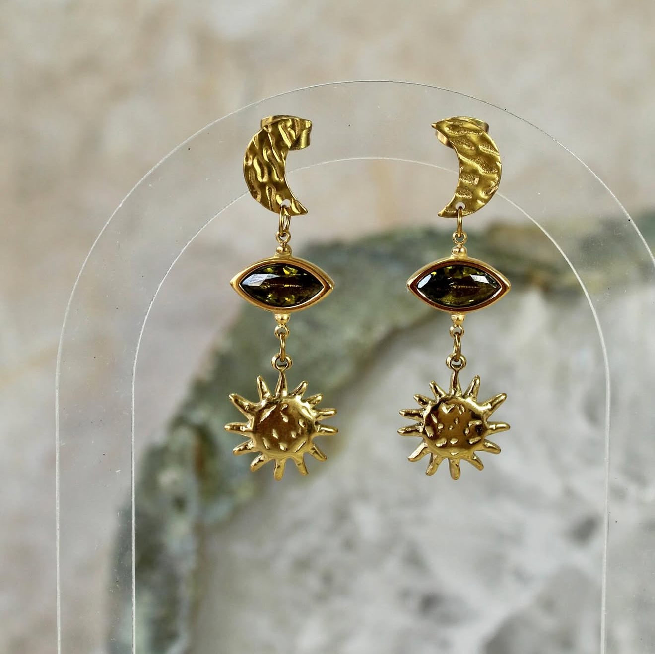 Gold Plated Stainless Steel, Marquise green cubic Zirconia Sun & Moon