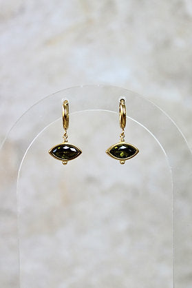 Huggies - Estella , Marquise Green Cubic Zirconia ,Gold Plated Stainless Steel