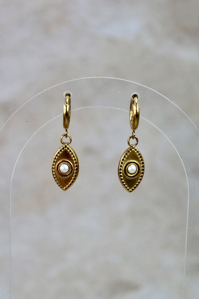 Gold Plated Stainless Steel, Huggie earrings with pearl center.